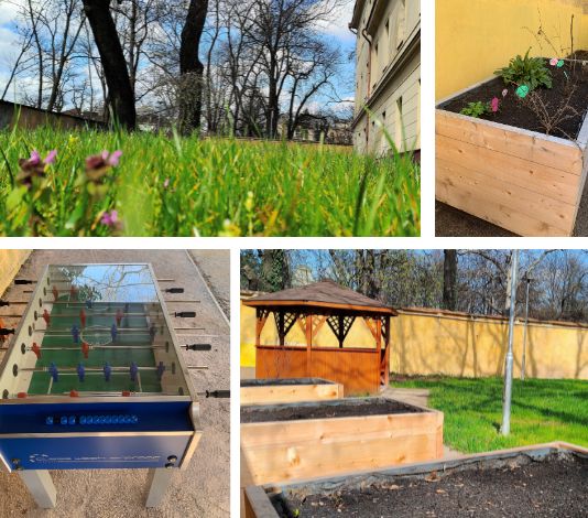 As part of improving existing therapeutic and social rehabilitation methods, the General Hospital has undertaken the complete reconstruction, renewal and equipment of two gardens on the premises of the Psychiatric Clinic – a sports-therapeutic-relaxation garden and a garden containing an outdoor classroom.